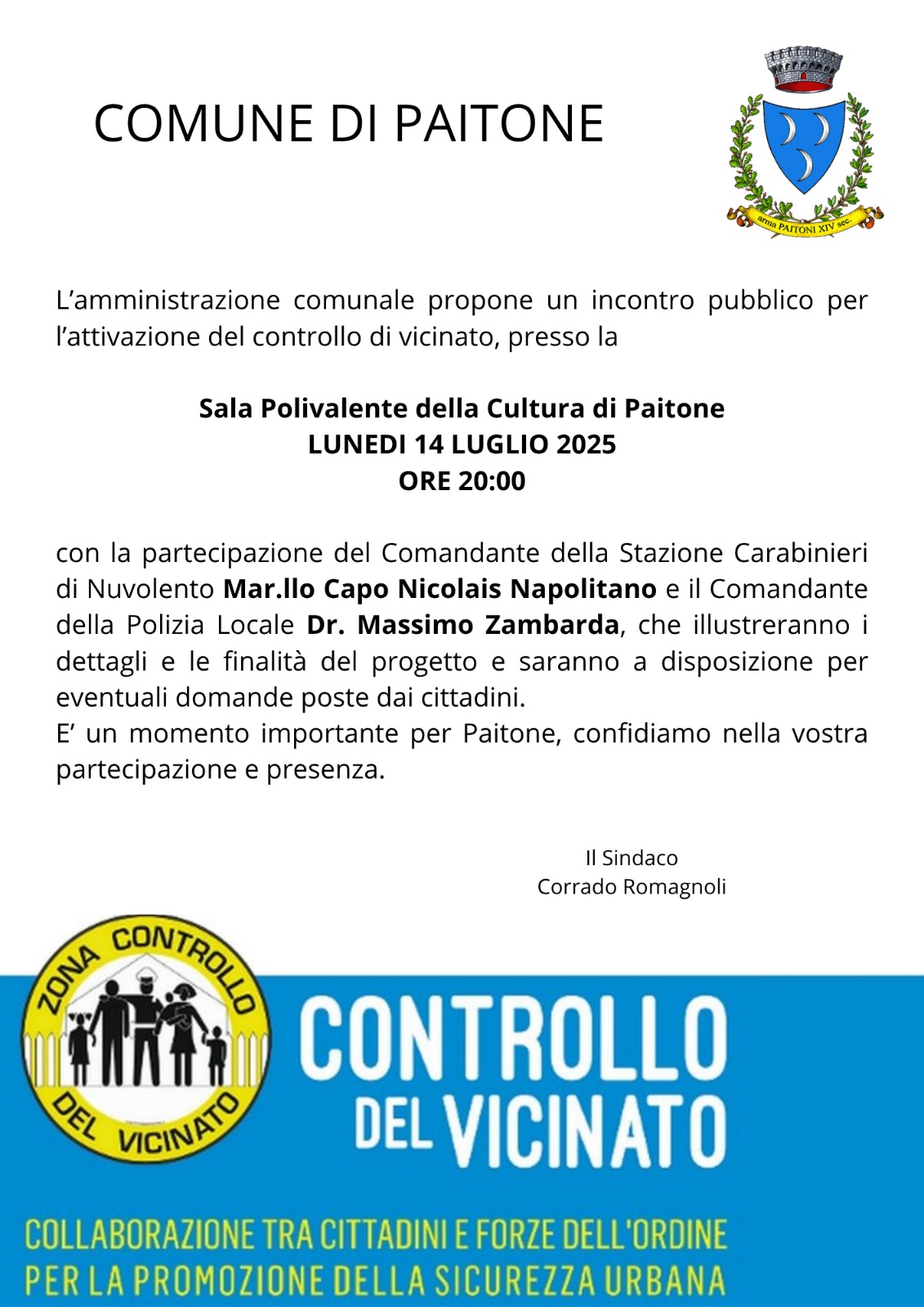 In allegato il modulo per aderire all'iniziativa Controllo di vicinato